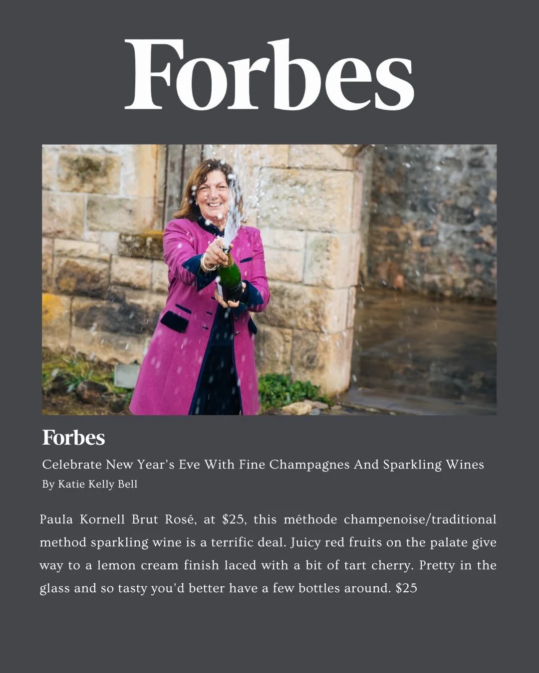 We’re pleased to share that we were featured in Forbes in the article “Celebrate New Year’s Eve with Fine Champagne and Sparkling Wines,” with a special callout for our Brut Rosé